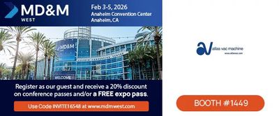 Atlas Vac Machine will again be at MD&M West in Anaheim, CA.